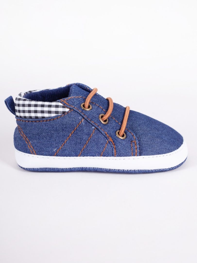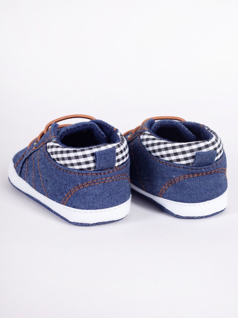 Chłopięce buciki w kolorze ciemno – jeansowym.