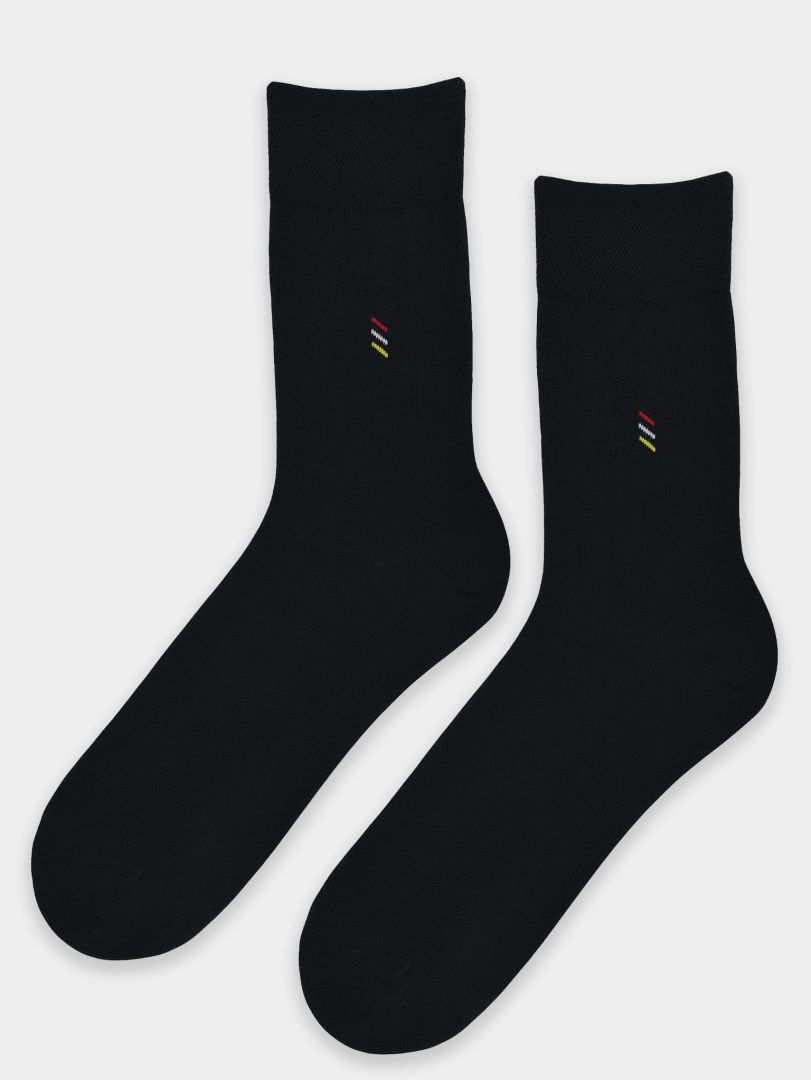 Czarne gładkie skarpety męskie wykonane w 80 procentach z włókna bambusowego. Miękkie, oddychające i antybakteryjne, idealne do garnituru i eleganckich stylizacji. Dostępne rozmiary 39-42 i 43-46.