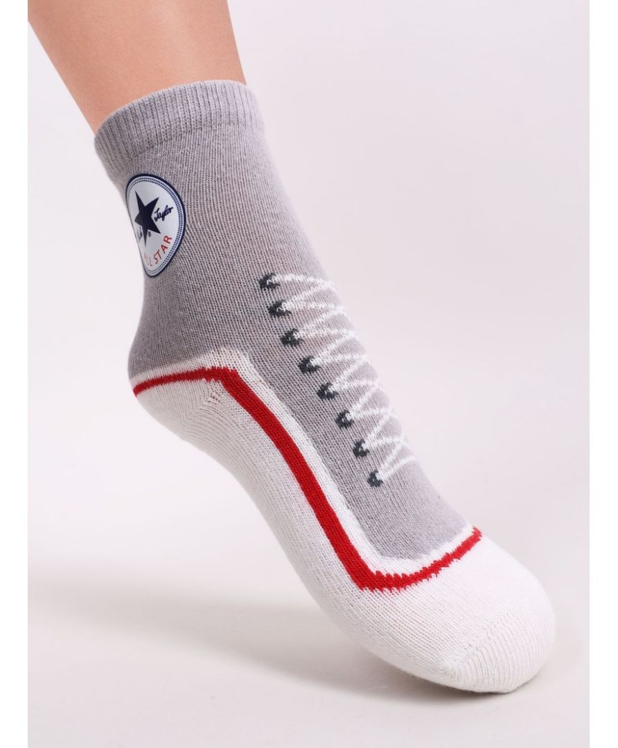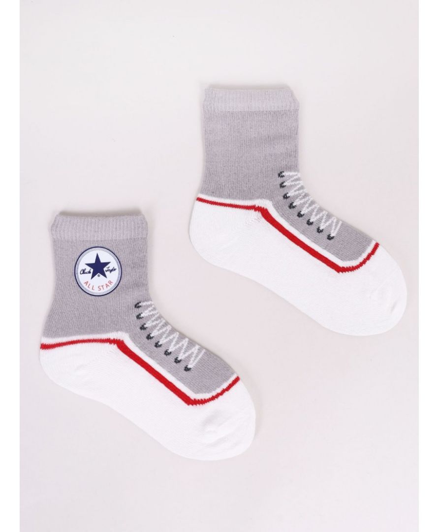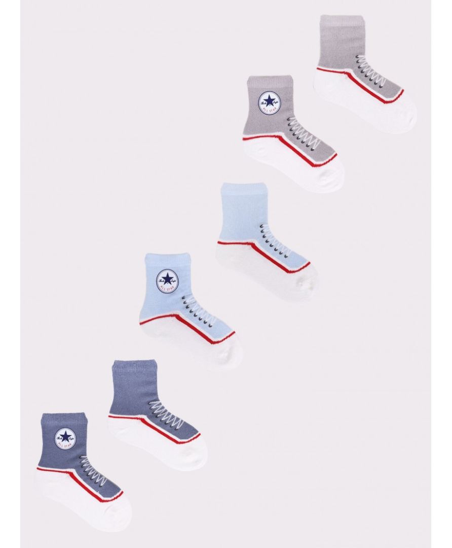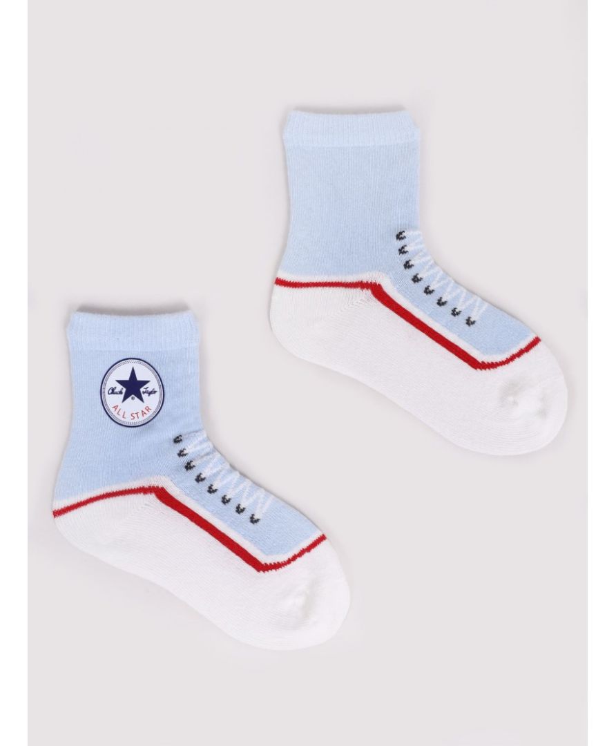 Delikatne w dotyku oraz przyjazne dla skóry dziecka skarpety chłopięce, świetnie sprawdzą się jako uzupełnienie każdej stylizacji. Skarpetki w chłopięcych kolorach, ze wzorem nawiązujące do bucika.