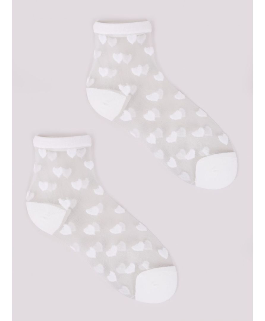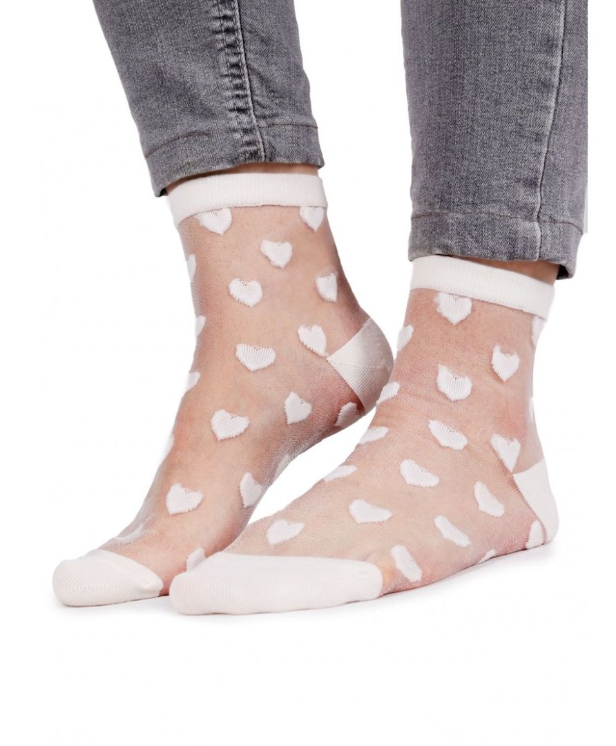 SKARPETKI DAMSKIE W KOLORZE BIAŁYM W SERDUSZKA.