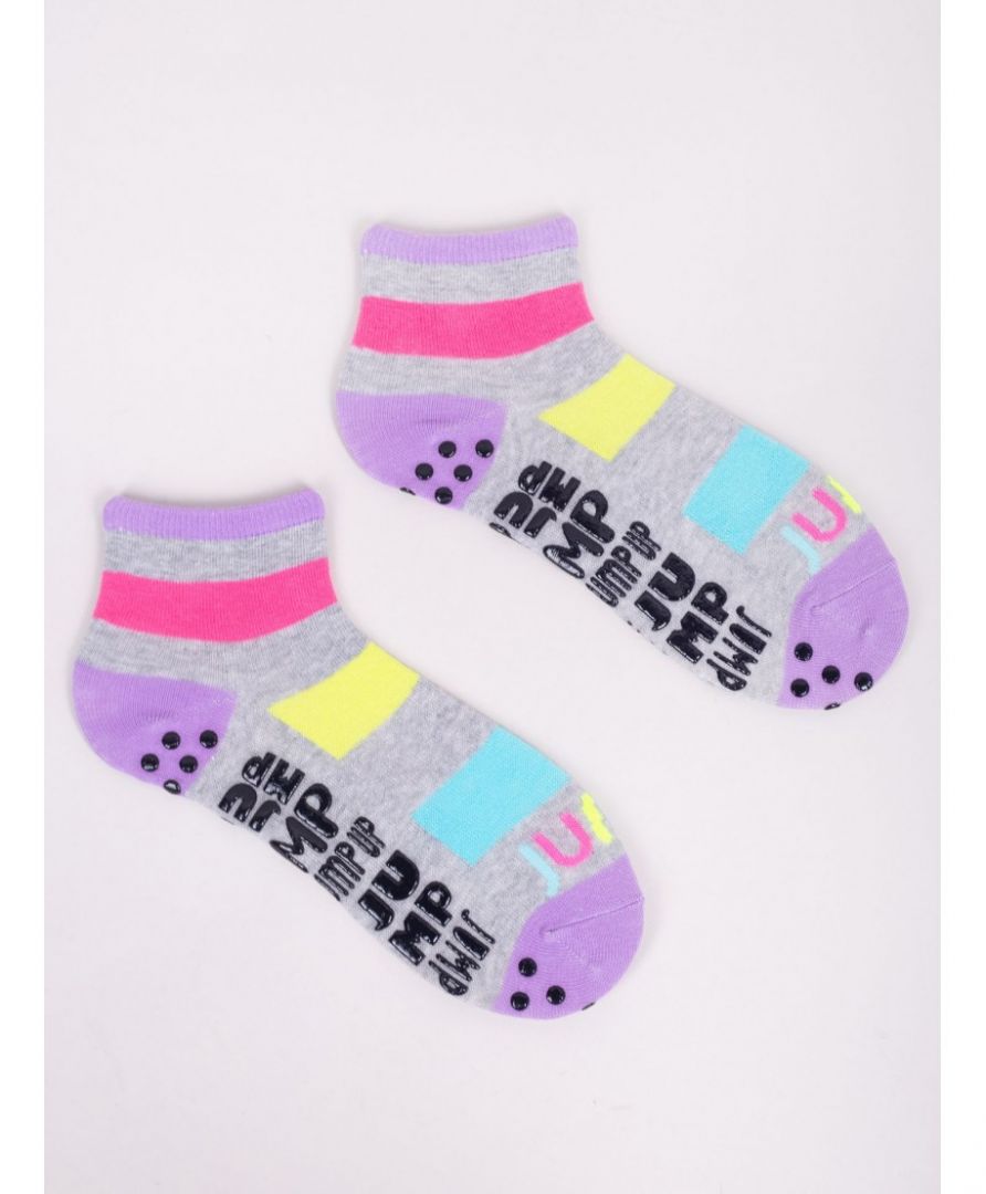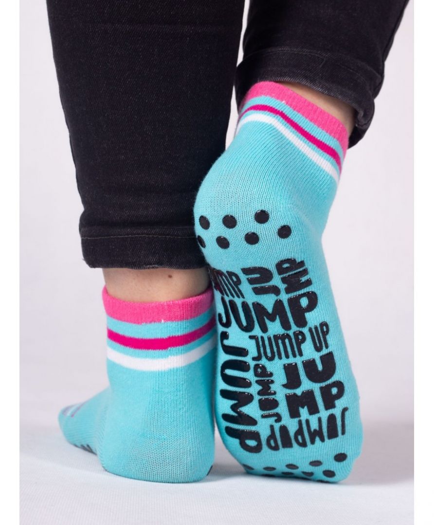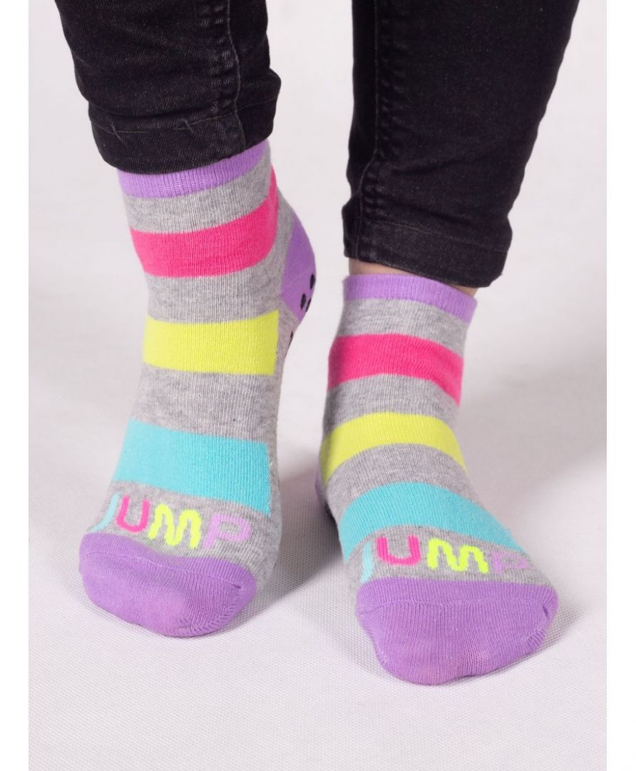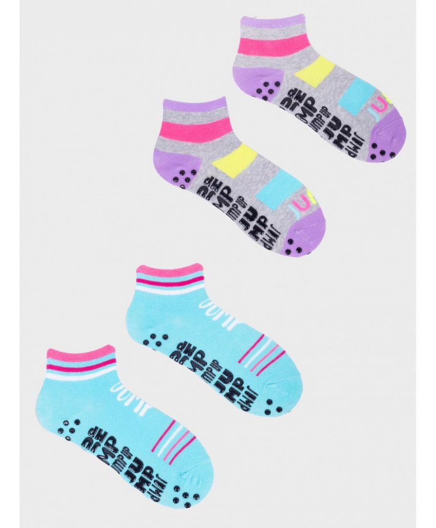 Skarpety dziewczęce krótkie na trampoliny w fantazyjnych kolorach.