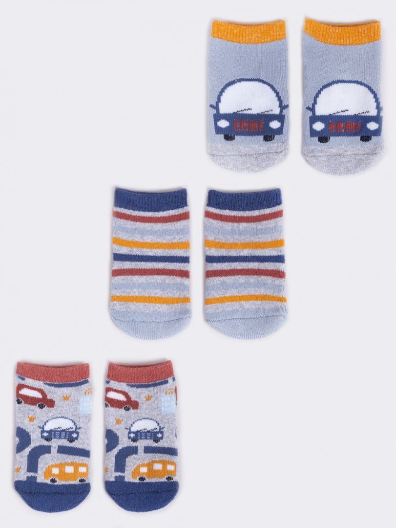 Bawełniane skarpety niemowlęce, dostępne w wygodnym 3-paku. Skarpety są elastyczne, doskonale się dopasowują do stopy dziecka.