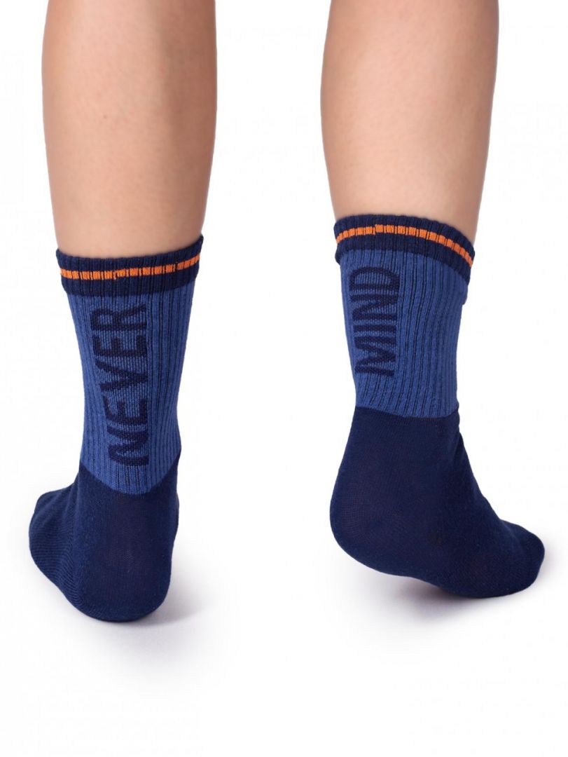 Skarpety są w niebanalnych kolorach oraz z napisem NEVER MIND.